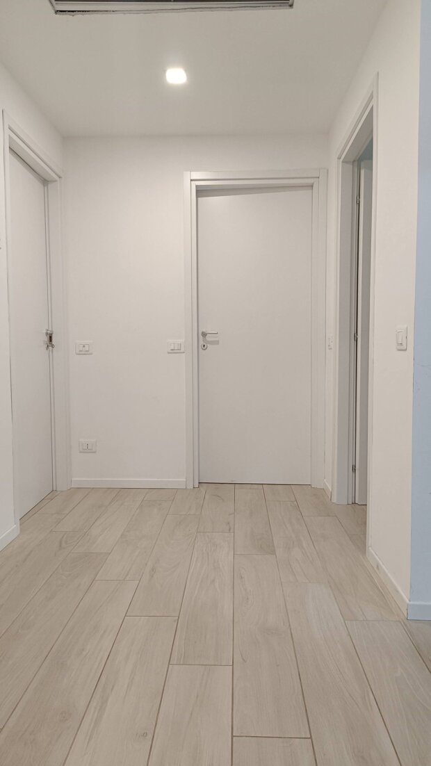 L'appartamento posto al primo piano è così disposto: ampio ingresso, soggiorno molto luminoso con balconcino, cucina, camera matrimoniale con balcone, cabina armadio e bagno in camera. Seconda camera da letto, bagno completo di doccia.